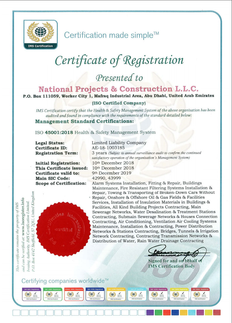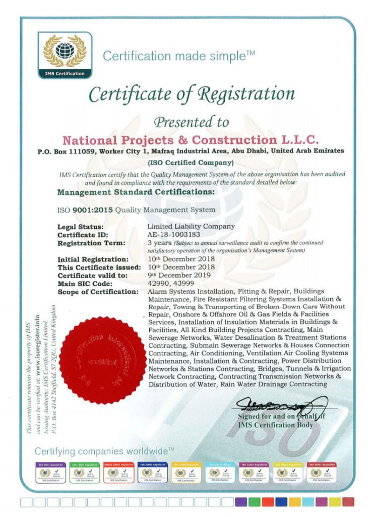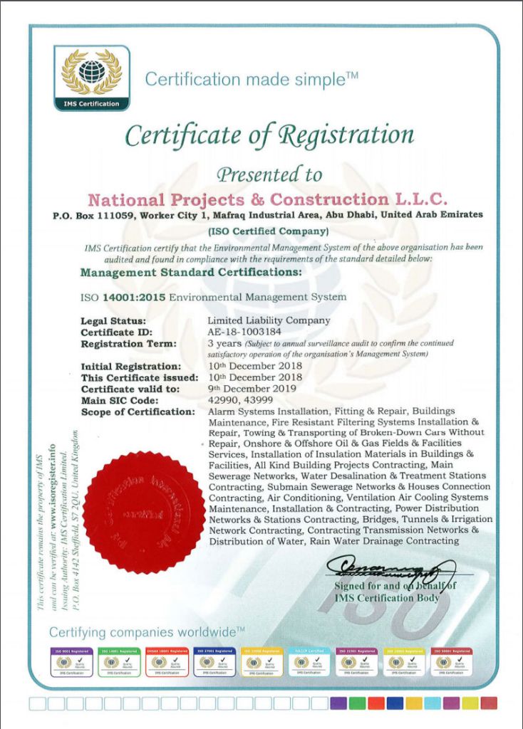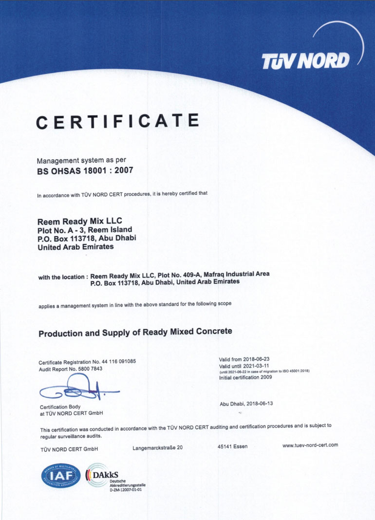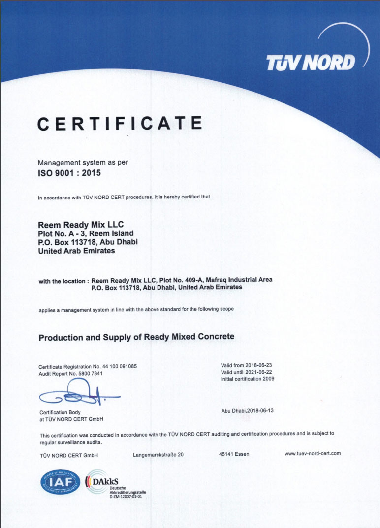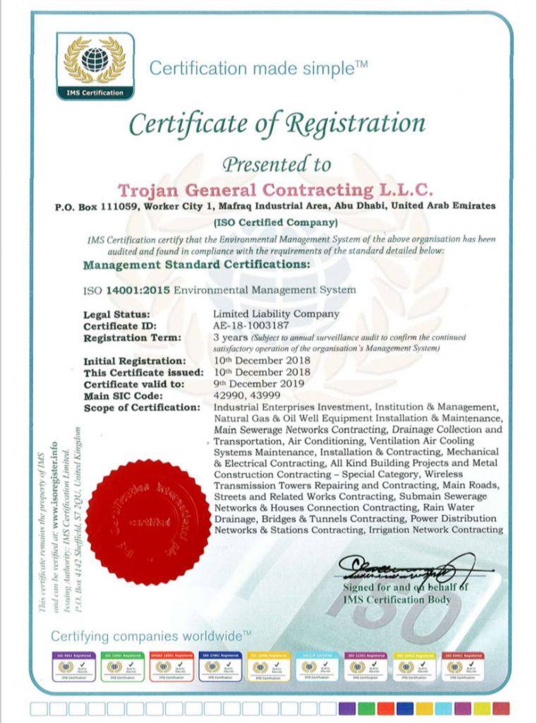 ISO CERTIFICATES Home QHSE Iso Certificates TROJAN GENERAL CONTRACTING NATIONAL PROJECTS AND CONSTRUCTION HI TECH AL MAHA REEM READY MIX
